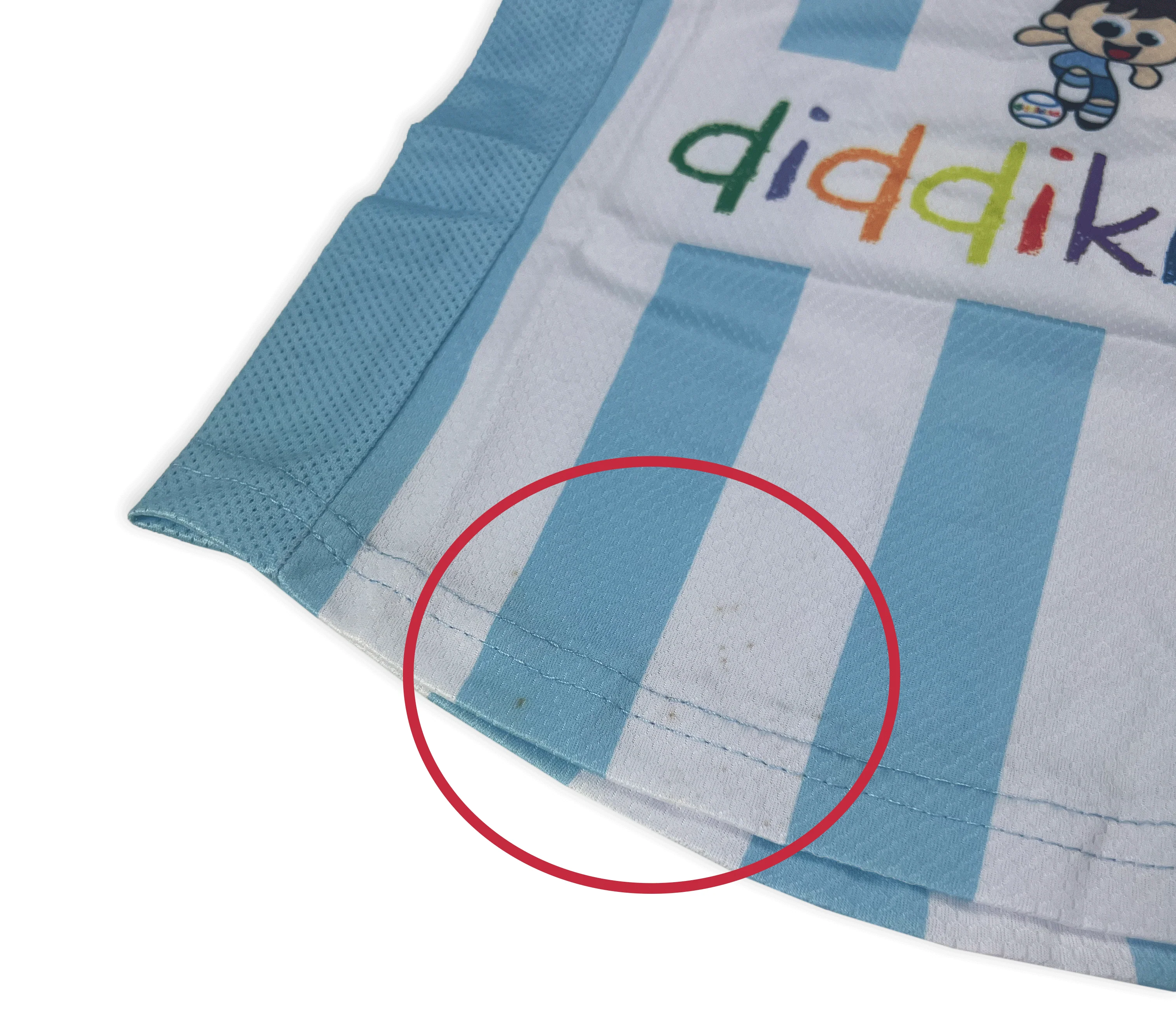 There is a stain mark on the front of the shirt & small marks at the bottom of the shirt.