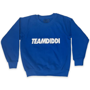 Grey cotton/polyester blend crew neck jumper with TEAMDIDDI on the front and bespoke label on the sleeve (true to size)