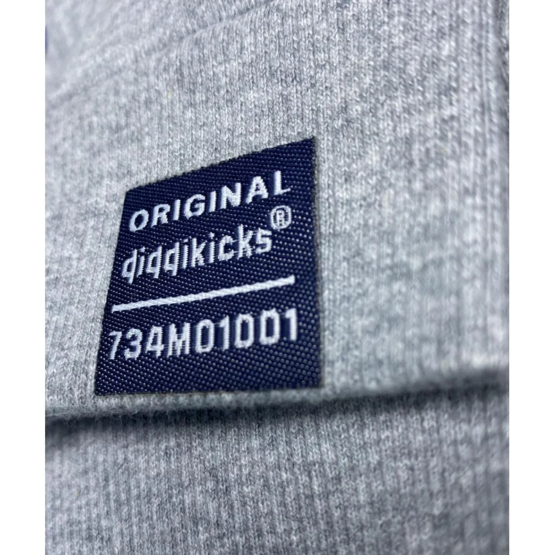 Grey cotton/polyester blend crew neck jumper with Diddikicks chenille patch on the front and bespoke label on the sleeve (true to size)