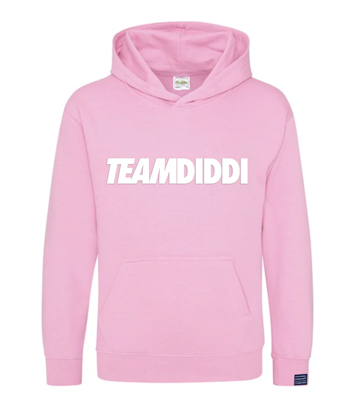 TEAM DIDDI hoodies available in Baby Pink, Royal Blue, and Heather Grey.